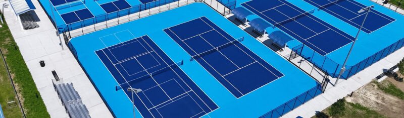 Four new tennis and pickleball courts at Dracut High School (Dracut, MA) surfaced in Blue and Stadium Blue Novaplay. Special Thanks to Classic Turf/Tarkett Sports for the wonderful photo.